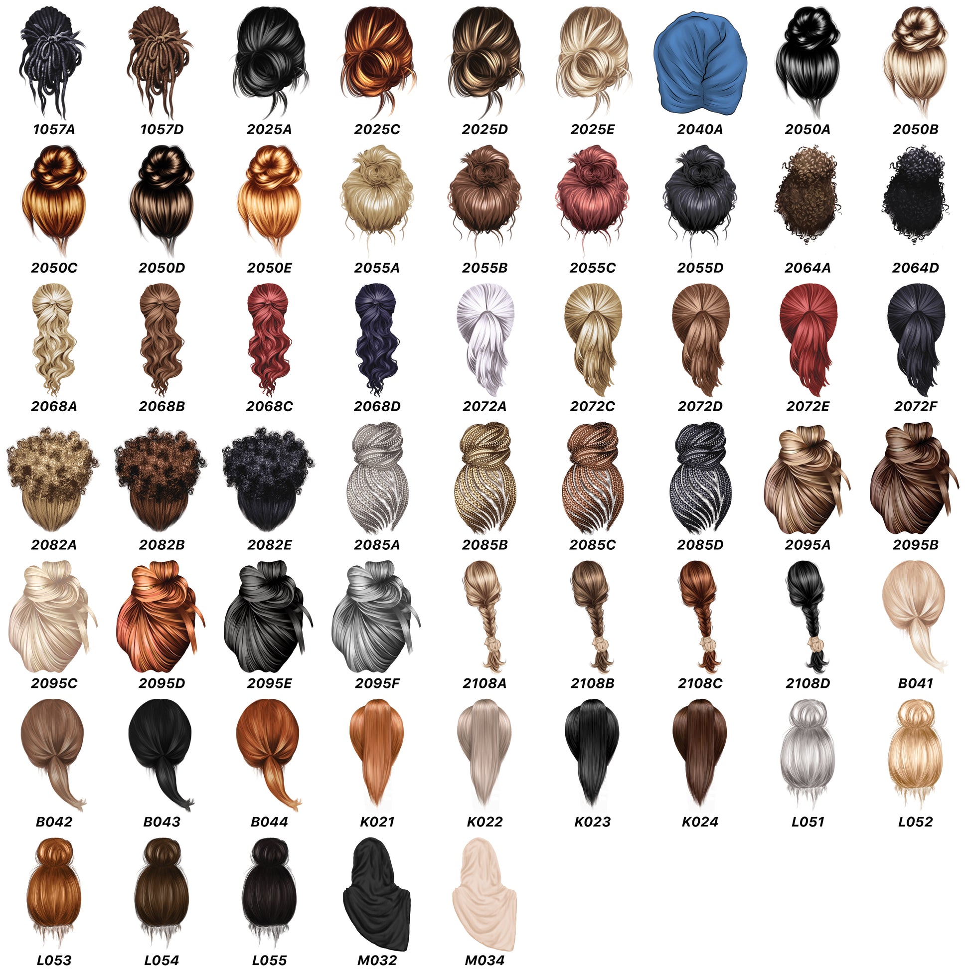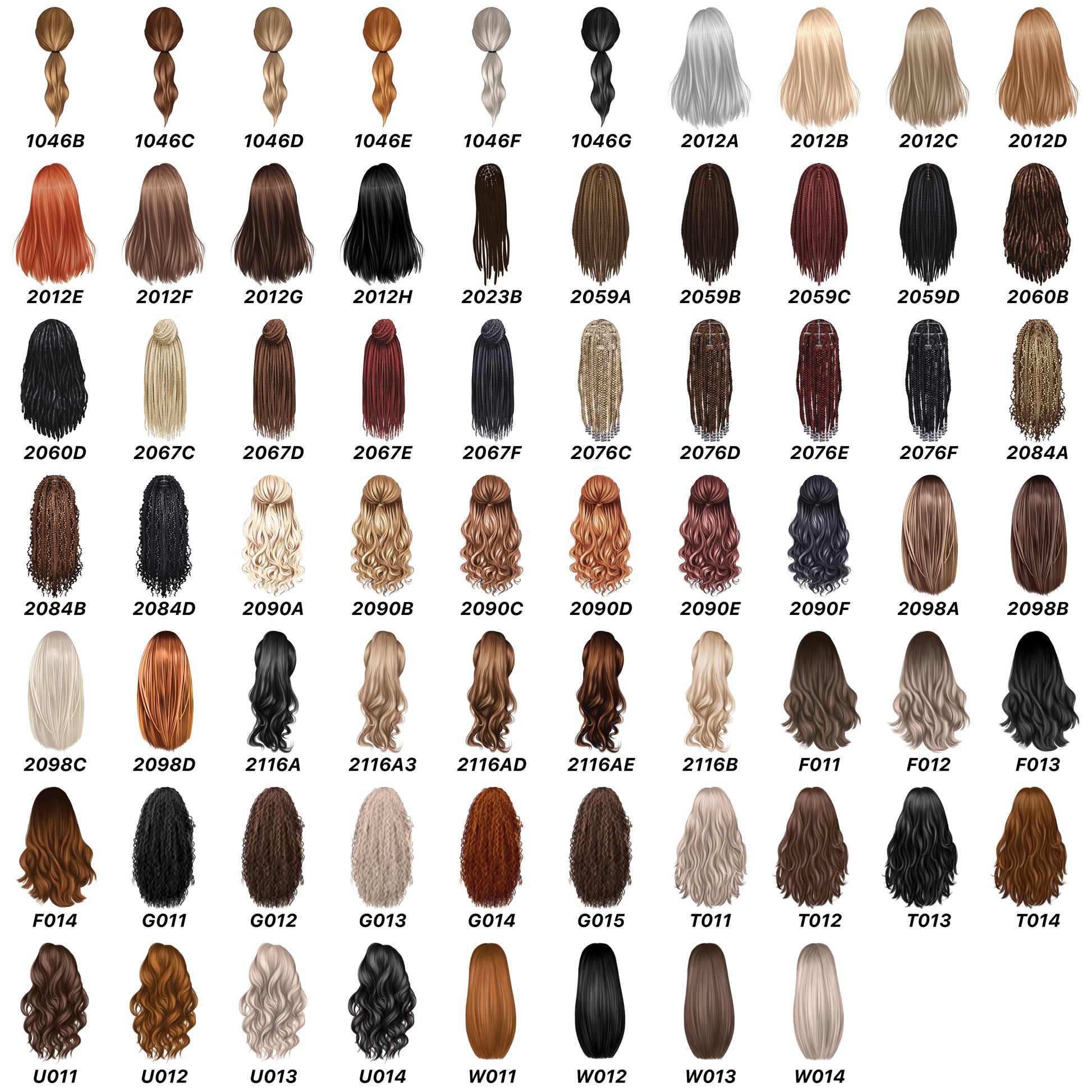 Look at the options in the images and enter your choices below. Example: and Maria, skin k3, hair 2012G, body slim, Outfit: J1 + 04, drink h2