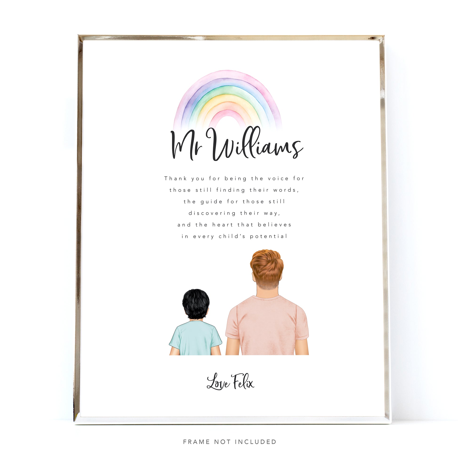Show your appreciation for your child's teacher with this personalised print. Perfect as a thank you gift at the end of the school year. Also suitable for nursery teachers and teaching assistants.