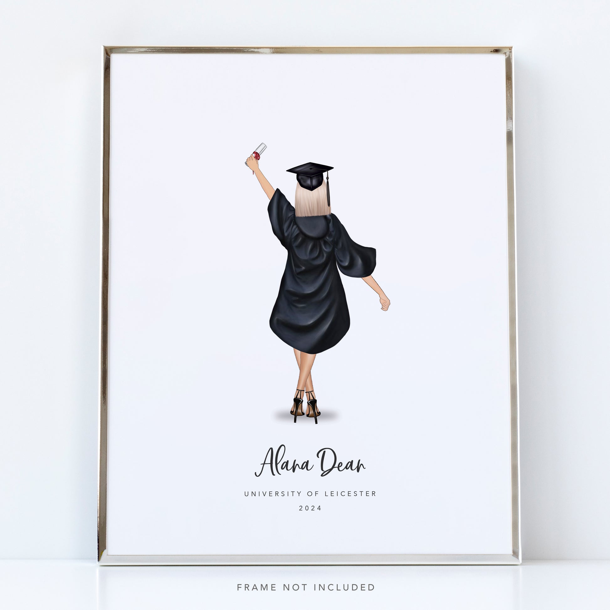 Celebrate your loved one's milestone achievement with our customisable graduation print. Designed for daughters, granddaughters, or best friends, choose from diverse skin tones and hair styles to create a truly personalised gift. Celebrate her success with a thoughtful and unique personalised graduation gift that she'll cherish forever.