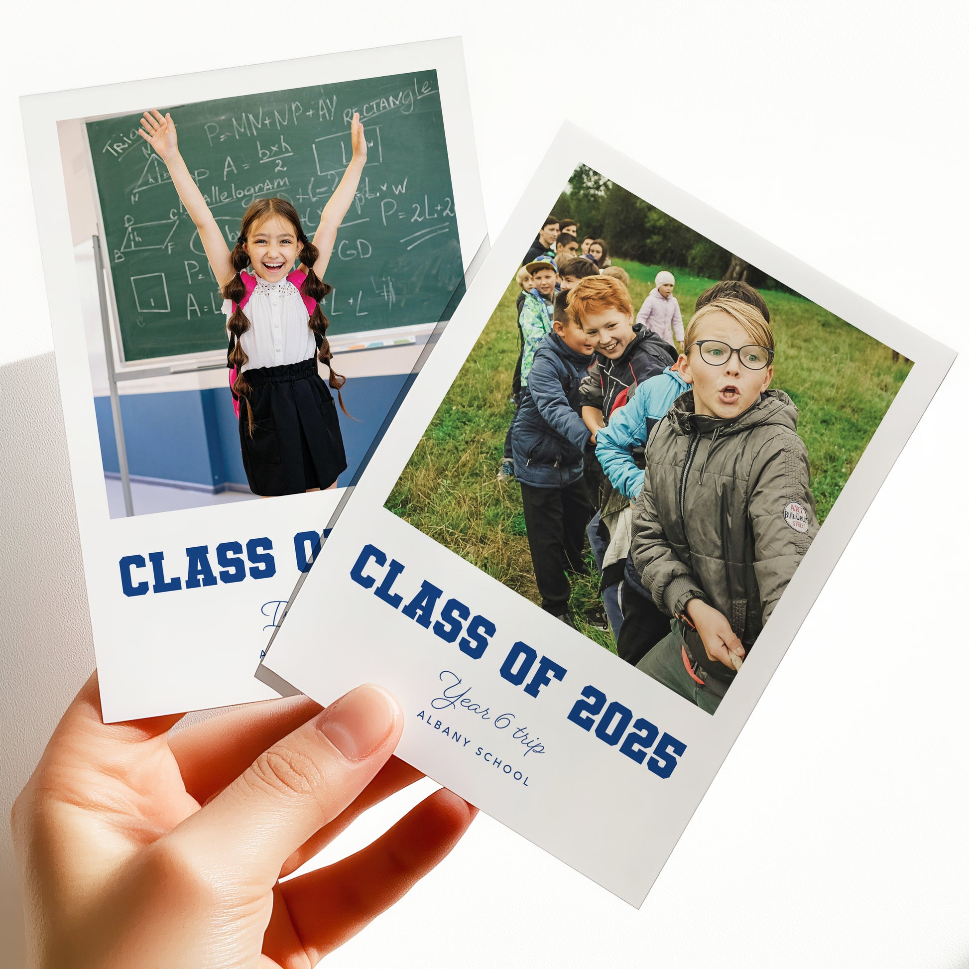 Our Kids Personalised Class of 2025 Photos can capture moments from your child's school year, including trips, events, bonding with friends and the last day of school. Each image is branded with "Class of 2025" and any caption of your choice and your child's school name (optional). A unique personal keepsake or a gift to share with classmates to celebrate the end of the school year. Suitable for any age/school year.