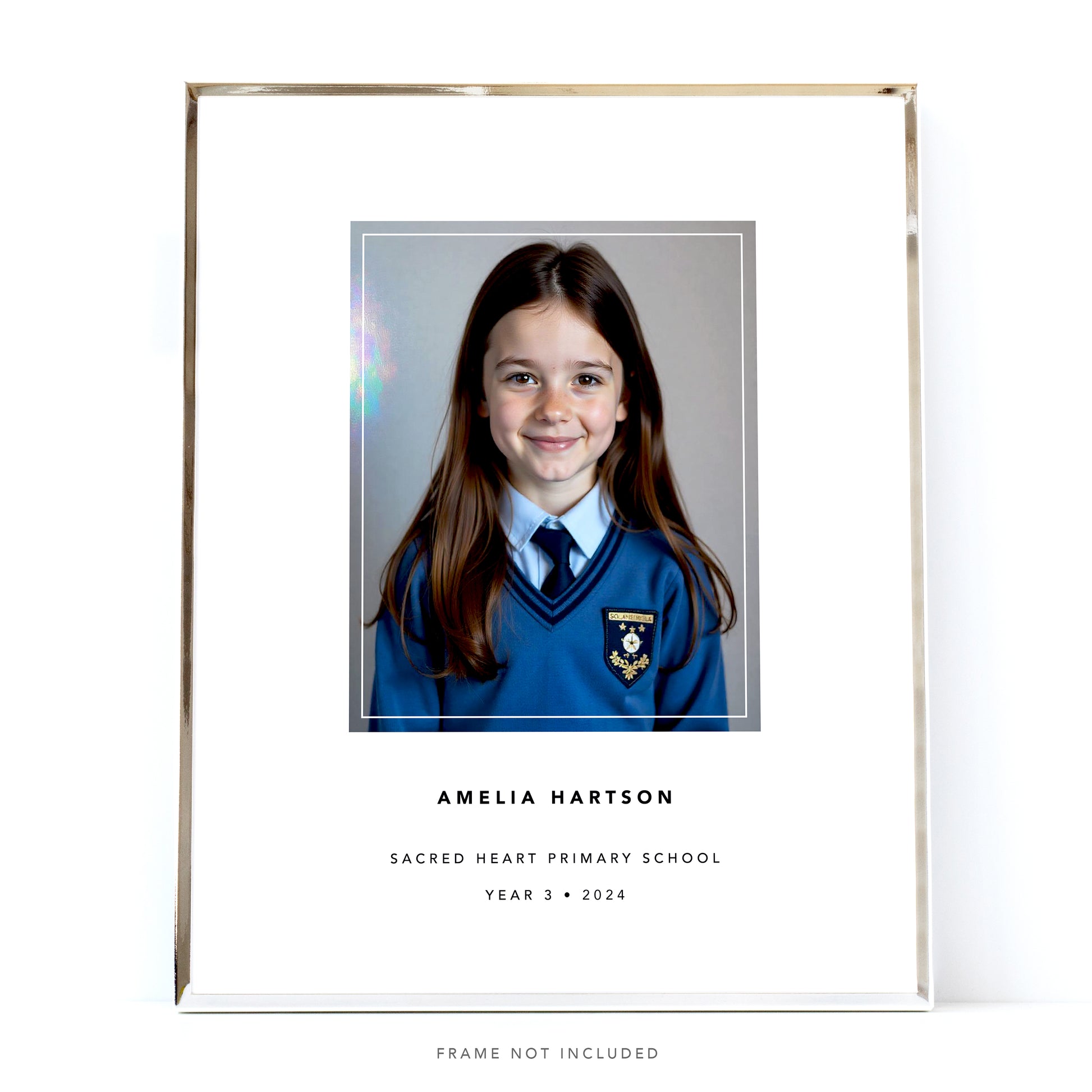 Capture the cuteness of your child's school photo with our My School Photo Print. Cherish the memories and display this charming print in your home. Perfect for gifting to family and friends. (Cue "awws" and "how precious!")