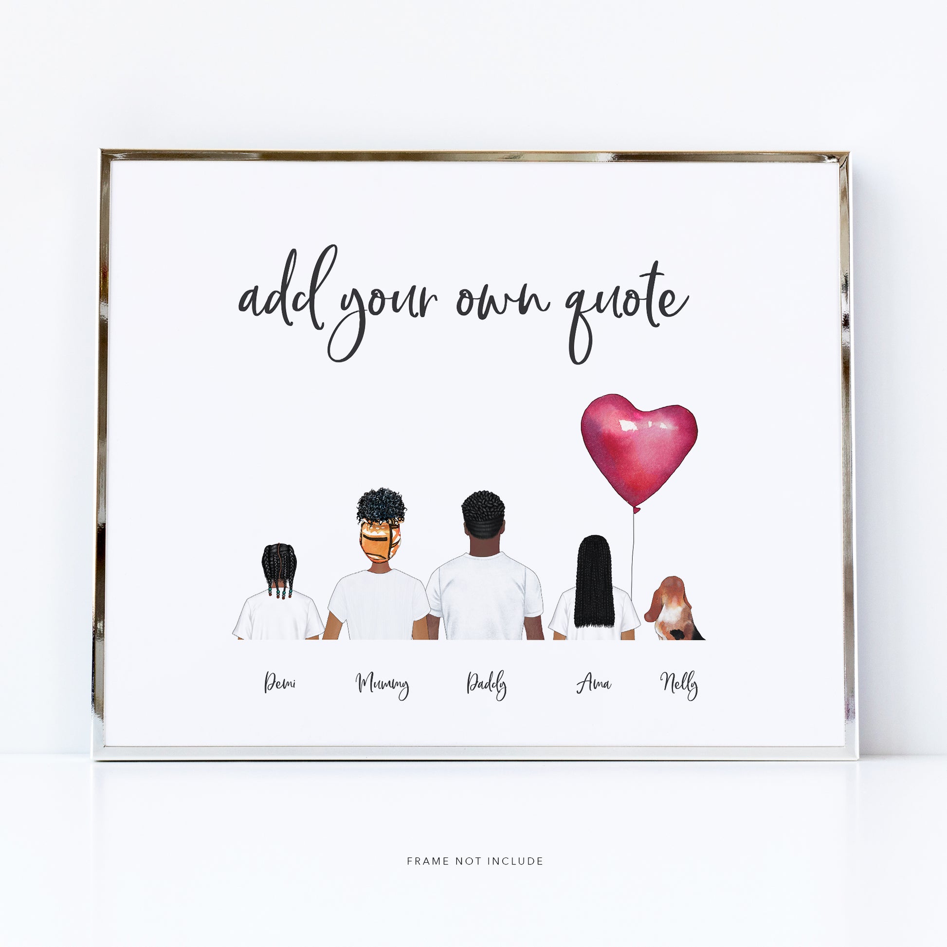 A personalised family picture featuring Mum and her children. Perfect for personal use, Mother’s Day, birthdays, or Christmas.